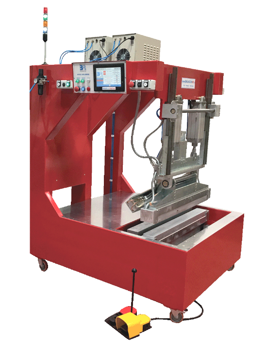 Sa construction en acier ferme est très rigide, résistant à la déviation de la pression qui est générée lorsque la pneumatique met en contact la barre de soudage supérieure et inférieure correspondante (tige).