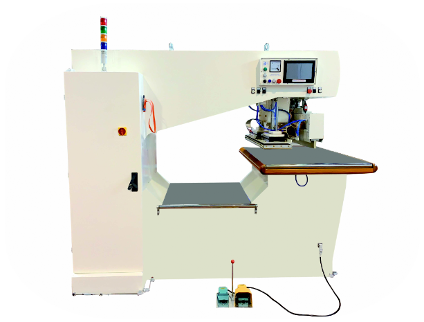 Équipé de nombreux accessoires qui facilitent (et sécurisent) l'exécution des travaux et la manipulation du tissu: système de protection de la presse, pédale, guide laser, télécommande, électrodes spécialement conçues, personnalisées et gravées, système de changement d'électrode facile, système de vide pour positionner les matériaux, ect .
